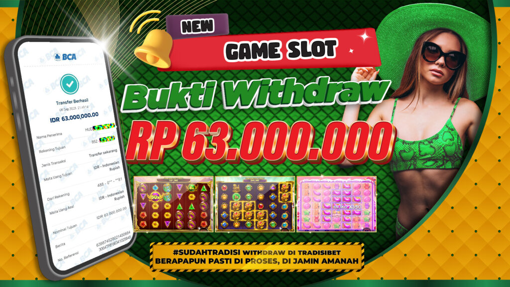 Kabar gembira kembali datang dari dunia hiburan online. Pada 06 September 2025, seorang member setia TRADISIBET berhasil meraih kemenangan besar di kategori Slot Online dengan total hadiah mencapai Rp 63.000.000,-. Tidak hanya menorehkan sejarah pribadi, kemenangan ini juga menjadi bukti nyata bahwa TRADISIBET selalu menepati janji dengan membayar jackpot lunas tanpa potongan dan dengan proses super cepat.