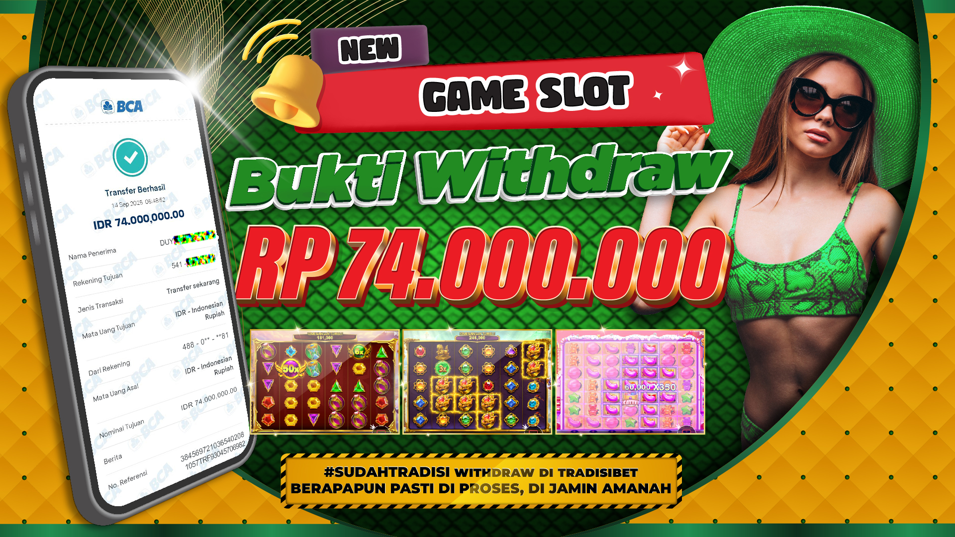 Industri hiburan online semakin berkembang pesat, dan permainan slot online menjadi salah satu primadona yang selalu digemari oleh para pemain. Dengan grafis modern, fitur menarik, serta peluang kemenangan besar, tidak heran jika slot online gacor mampu mencetak banyak pemenang. Hal ini kembali terbukti melalui kemenangan spektakuler salah satu member TRADISIBET pada 14 September 2025, yang berhasil membawa pulang jackpot sebesar Rp 74.000.000,- dan sudah resmi LUNAS dibayarkan.