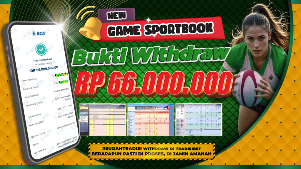 Dunia taruhan olahraga online kembali diramaikan dengan kabar menggembirakan dari salah satu platform ternama, TRADISIBET. Pada 15 September 2025, seorang member berhasil meraih kemenangan besar dari kategori SPORTBOOK dengan total jackpot sebesar Rp 66.000.000,-. Yang lebih mengesankan, kemenangan tersebut langsung dibayarkan lunas hanya dalam hitungan menit, menambah bukti nyata bahwa TRADISIBET adalah situs judi online terpercaya di Indonesia.