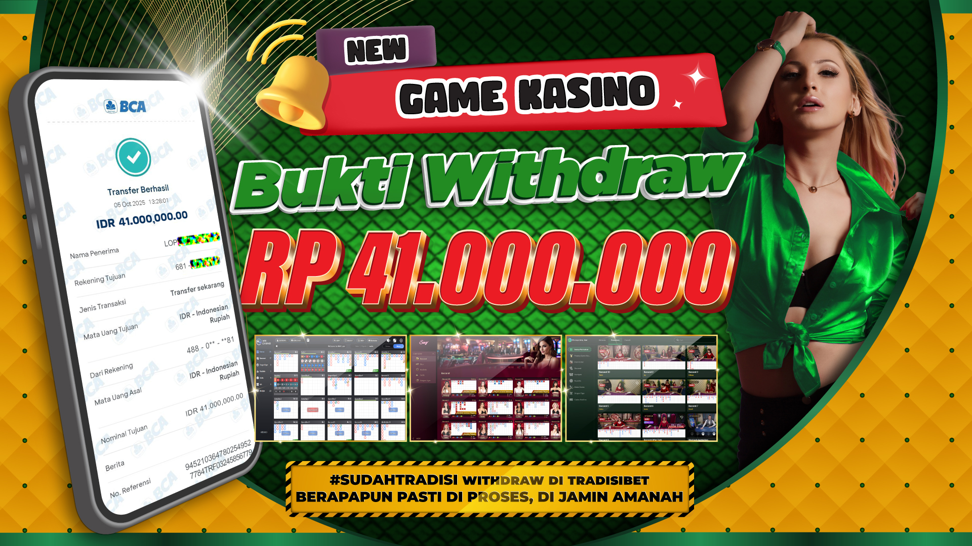 Tradisibet secara resmi telah mengonfirmasi bahwa kemenangan Live Casino pada 05 Oktober 2025 sebesar Rp 41.000.000,- telah dibayar lunas tanpa potongan sedikit pun. Bukti pembayaran tersebut juga telah dipublikasikan di halaman resmi Tradisibet sebagai bentuk transparansi kepada seluruh member.