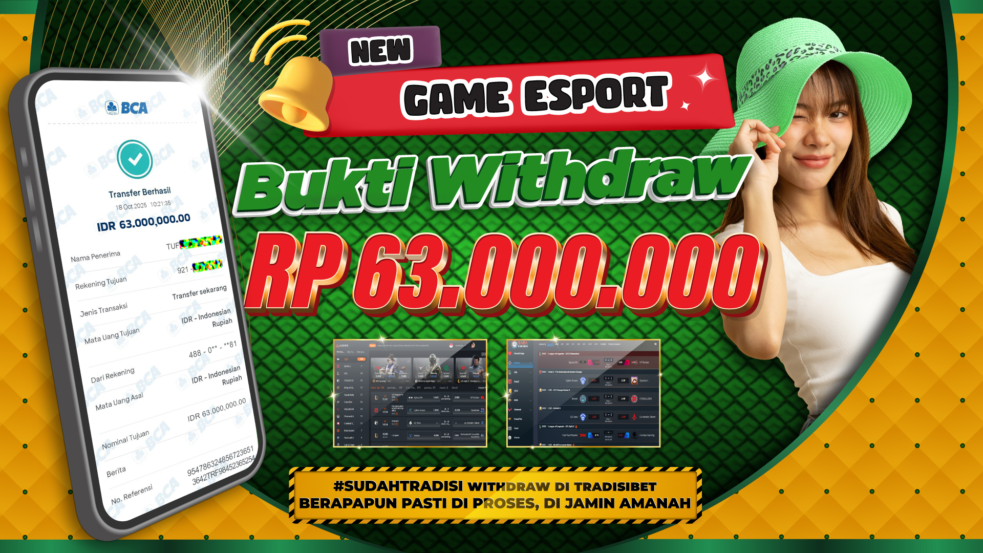 Kemenangan Rp 63.000.000,- pada kategori E-SPORT TRADISIBET 18 Oktober 2025 adalah bukti nyata bahwa platform ini tidak hanya menjanjikan pengalaman bermain seru, tetapi juga keamanan dan kepastian pembayaran.